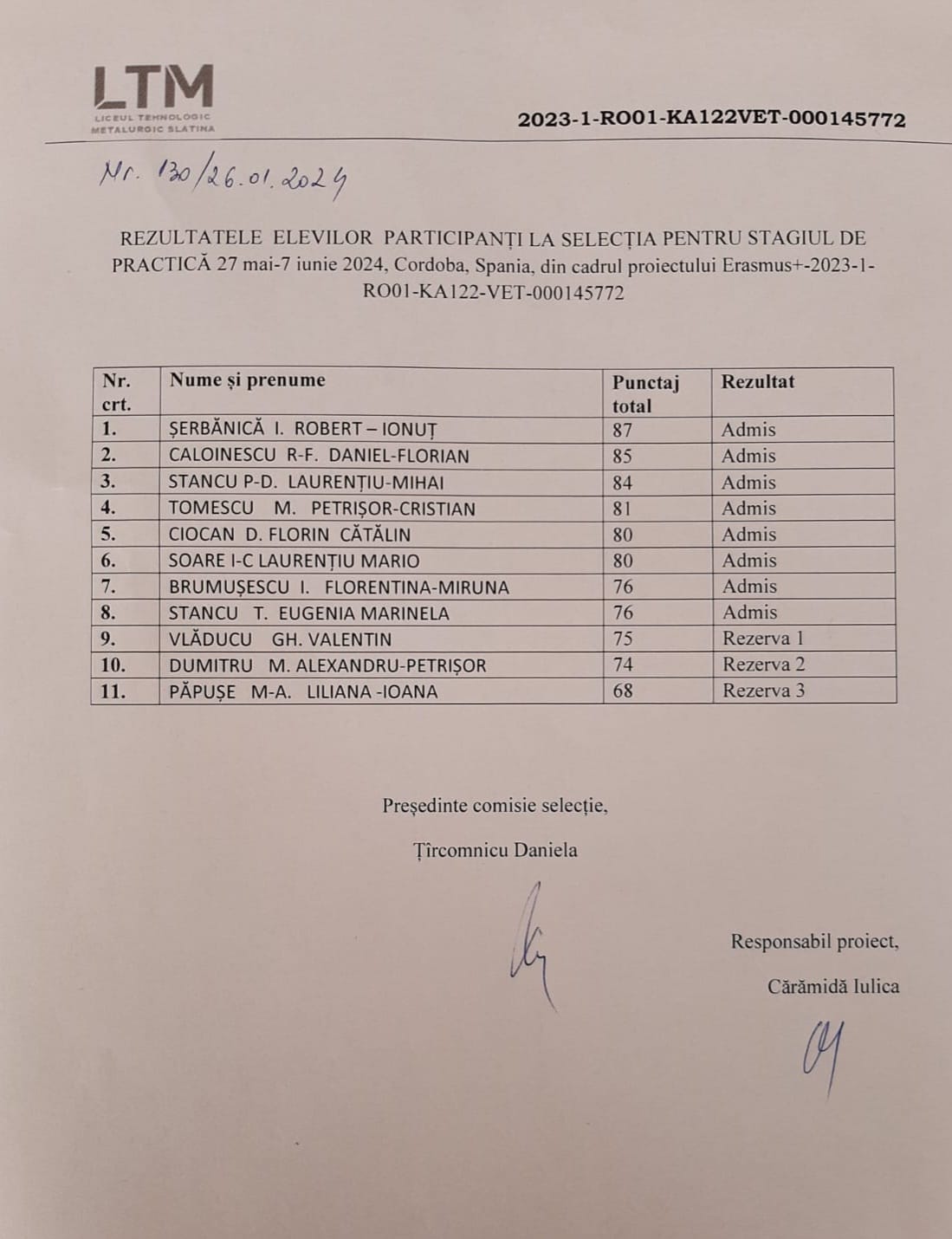 - coordonator proiect: prof. Cărămidă Iulica